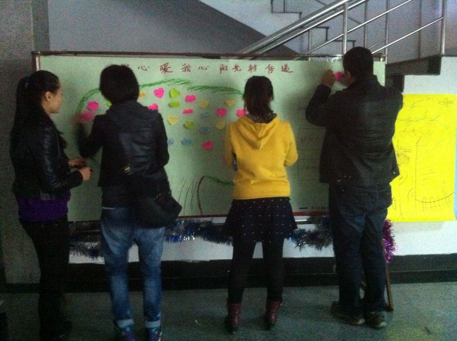 的学生不愿言语表达内心感觉的特性,我院心理部同学在认真研讨后,决定用简单快乐的游戏活动方式,调动大家的关注心理健康的兴趣,让同学们主动融入相亲相爱的学院大家庭。本次“你心暖我心,阳光树传递幸福感”活动由“激情60秒”活动和“心愿墙”活动两部分组成。在“激情60秒”游戏活动中,胜利组的同学们能够认真的准备下一次挑战;失败了的同学们也能去一起去面对和承担失败的惩罚。在“心愿墙”活动中,同学们也将很多平时不经常表露的情感和愿望,通过心愿便利贴的形式表达了出来。