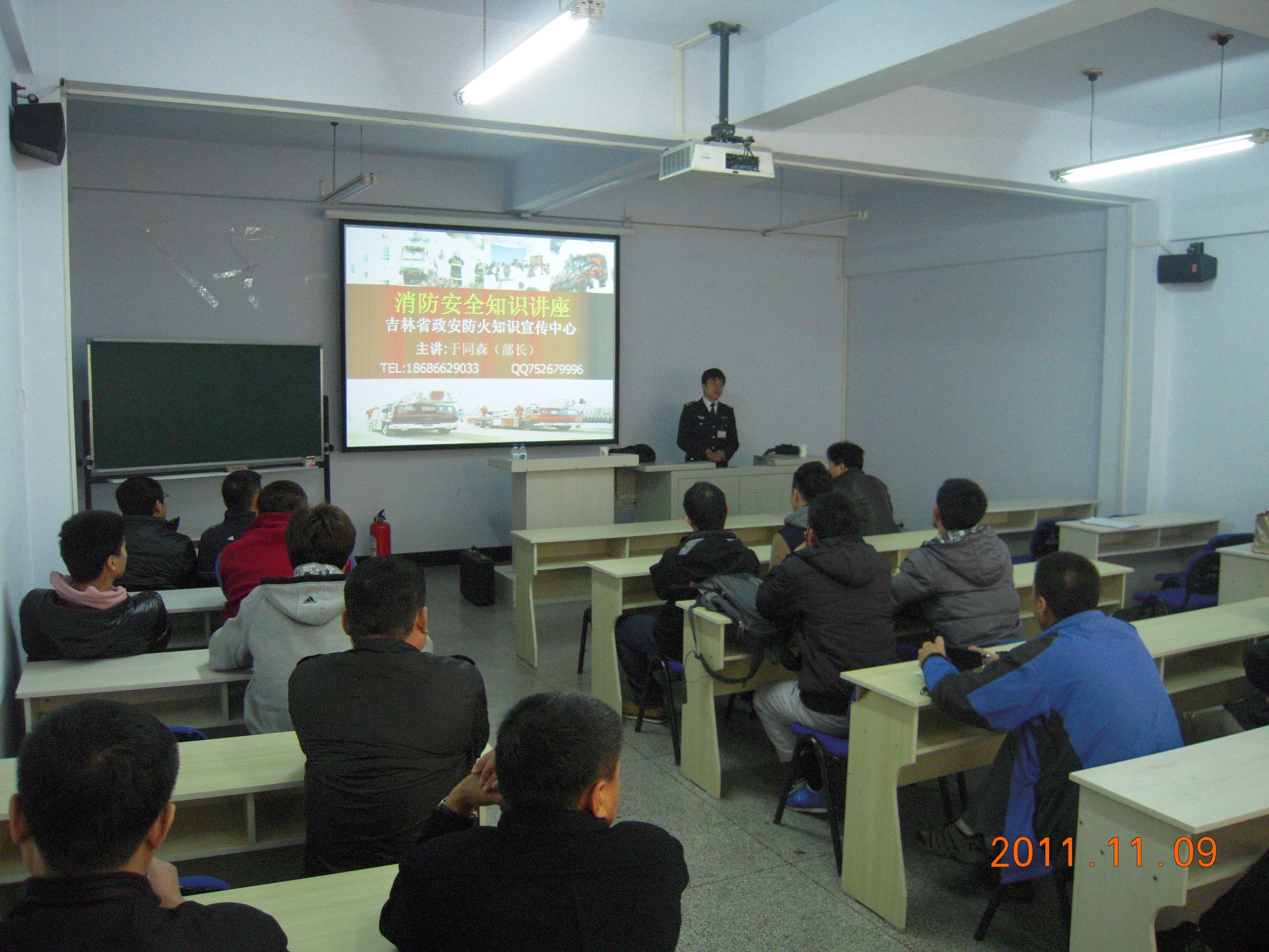邀请长春市政安防火知识宣传中心教官于同森为师生进行的普及消防知识报告会,学院领导、各校区体育部领导、各校区体育馆具体负责防火工作的教工、学院办公室工作人员,以及研究生新生参加了报告会。