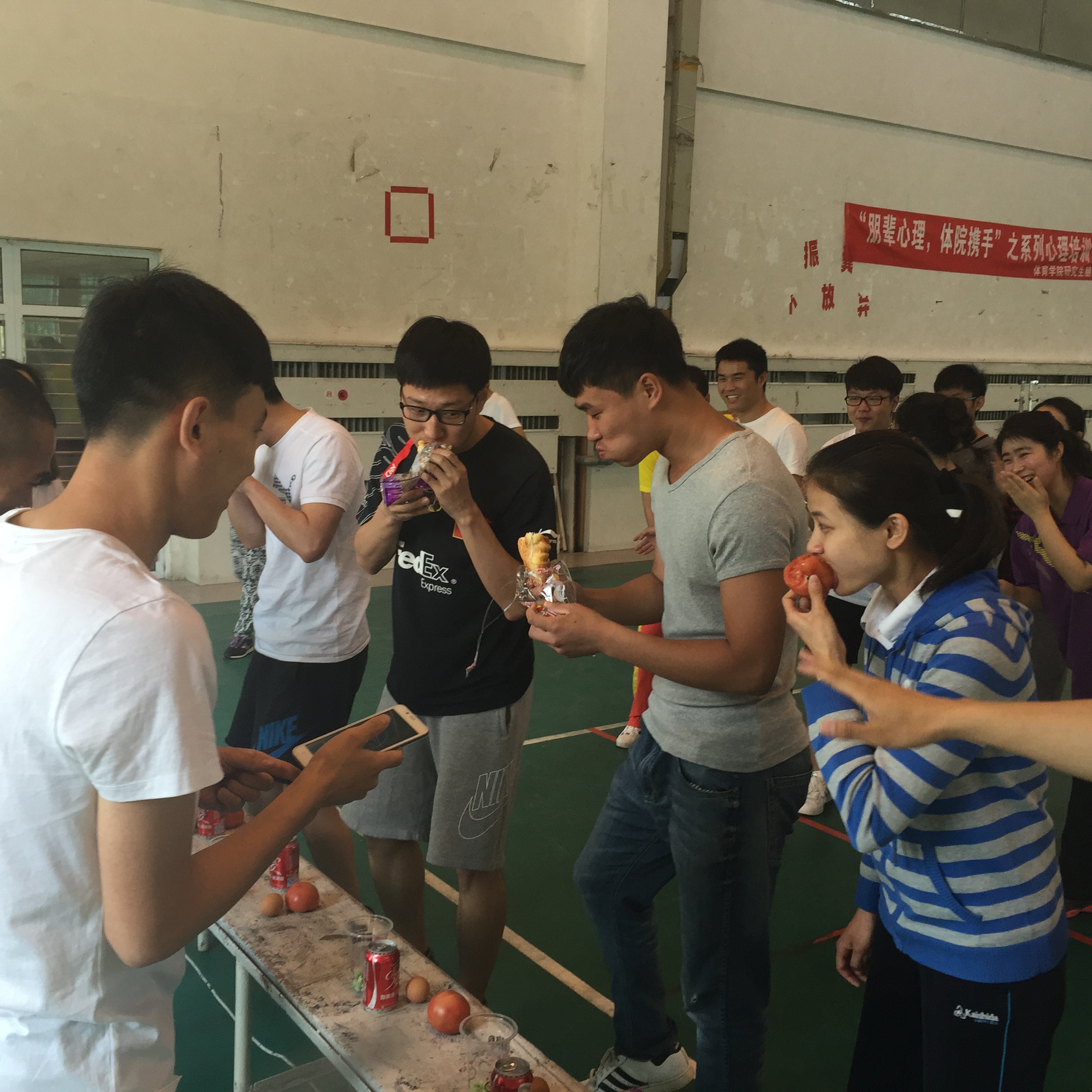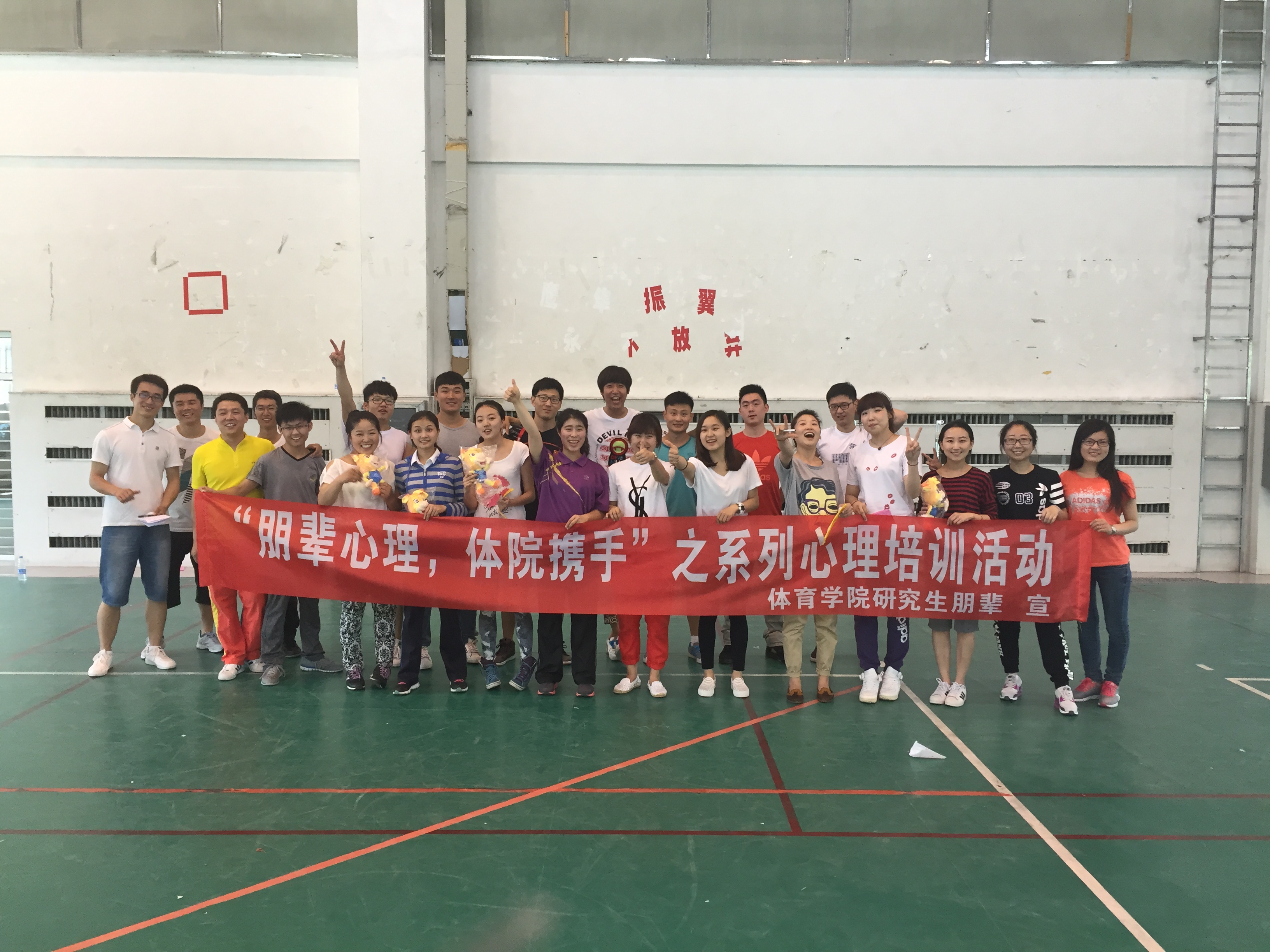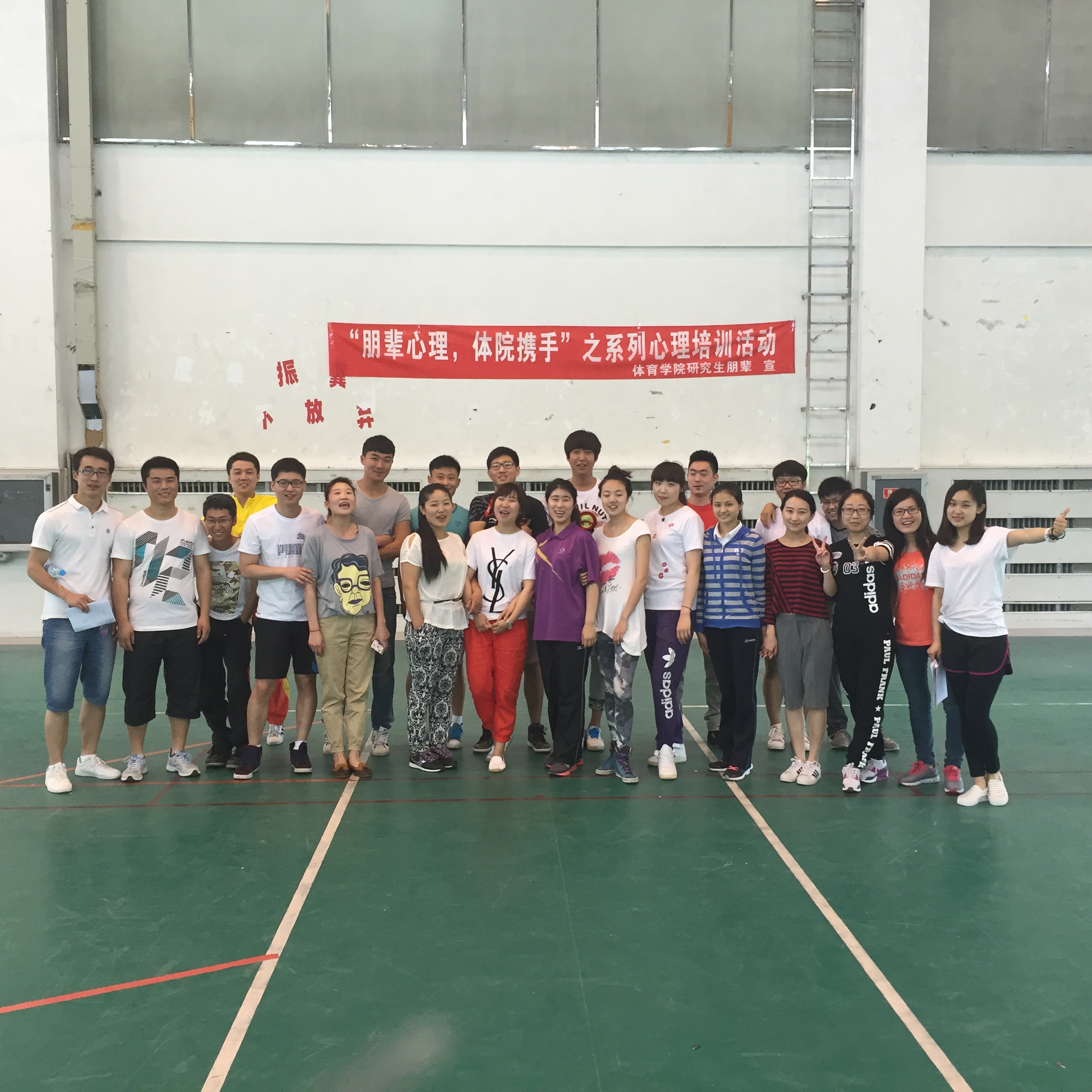 研究生朋辈心理辅导员姜雨彤在体育馆组织2014级研究生开展了“朋辈心理,体院携手”系列心理培训活动。