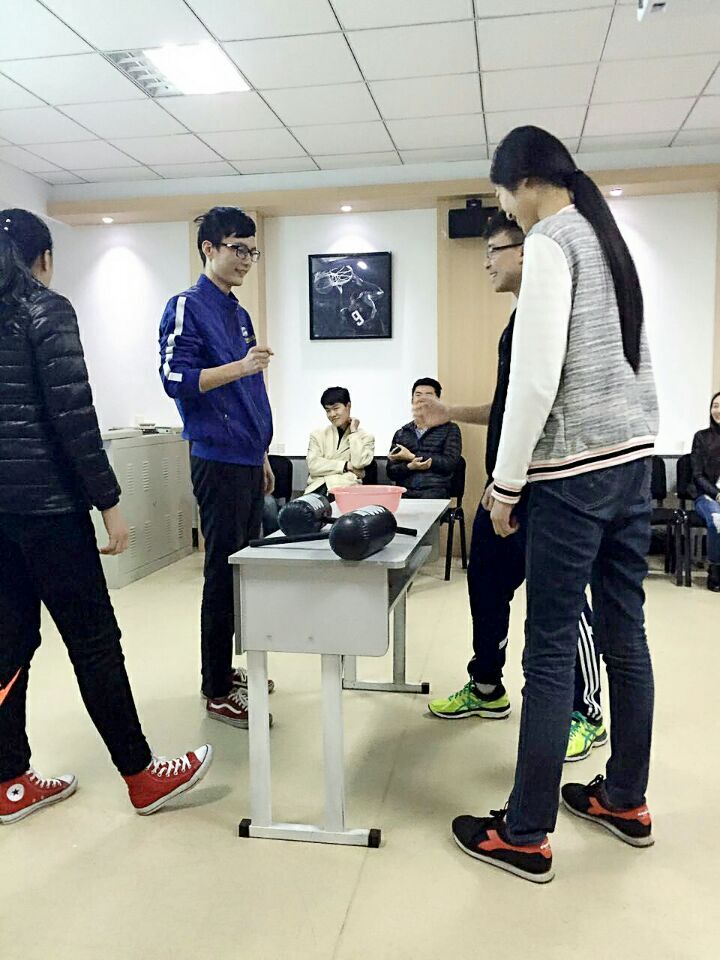 本次心灵沟通活动以“命运之锤”拉开帷幕,分为两队“窜天猴”队和“二踢脚”队,由各组队员选出队长,由队长带头带领队员分别进行四场游戏的的较量,在四场游戏的PK中各组队员相互协作,队长与队员之间也有了相互深入的沟通,在四场游戏的解压放松之后以“解决烦恼”为主题的头脑风暴开始深入到各位同学的心理面,每位同学将自己近期所遇到的苦恼写到纸上,放到准备好的纸盒里,由学院朋辈心理辅导员张青玲击鼓,让同学相互传花球,鼓停花落的同学则随机抽取问题纸条,站到大家围好的圆圈中间,大声读出烦恼并说出假如是我我该怎么做,如果解决不了可以向周围同学求助。通过这一环节大家的困惑烦恼不仅得到了解决,而且让大家感觉到了集体的温暖。最后大家还唱了一首黄漫