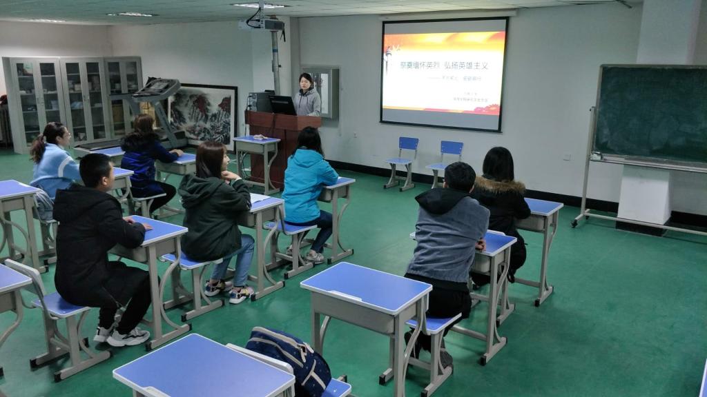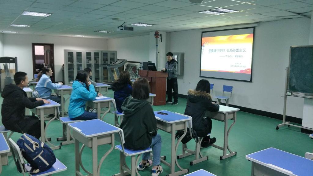 首先,同学们观看了一部很经典的反映抗战历史的军事题材影片《血战台儿庄》。观后,各位同学发表了自己的观后感。在抗战年代,日军侵略着中华民族的土地,毫无人性的残杀中国同胞,作为中国人,要永远铭记历史,不再让同样的历史在后代身上重演。先烈们用他们的生命和鲜血,为我们开创了一个美好的家园,一个和平的年代,我们要传承英烈精神,继承红色基因,立志报效祖国。各位积极分子分享了家乡的英雄事迹,杨靖宇、董存瑞、赵一曼、刘胡兰、孙铭武等抗战英雄的事迹让积极分子们深受感动。大家表示革命英烈这种前仆后继、临难不屈、保卫祖国的精神是我们新时代最难忘的红色记忆,我们要把这份红色基因世代传承下去。