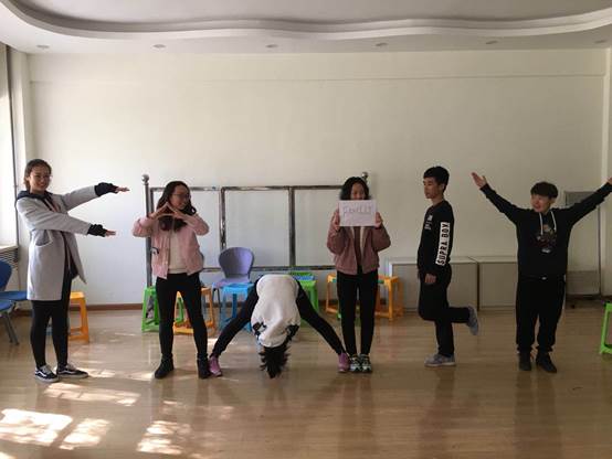 ,破冰活动让同学们迅速的彼此认识为整个活动营造好的氛围。团队建立阶段将同学们分成四组开展了“信任之旅”“人体字母”“抢滩登陆”“人椅破冰”“信心启迪”四个项目。人体字母展现了黄漫