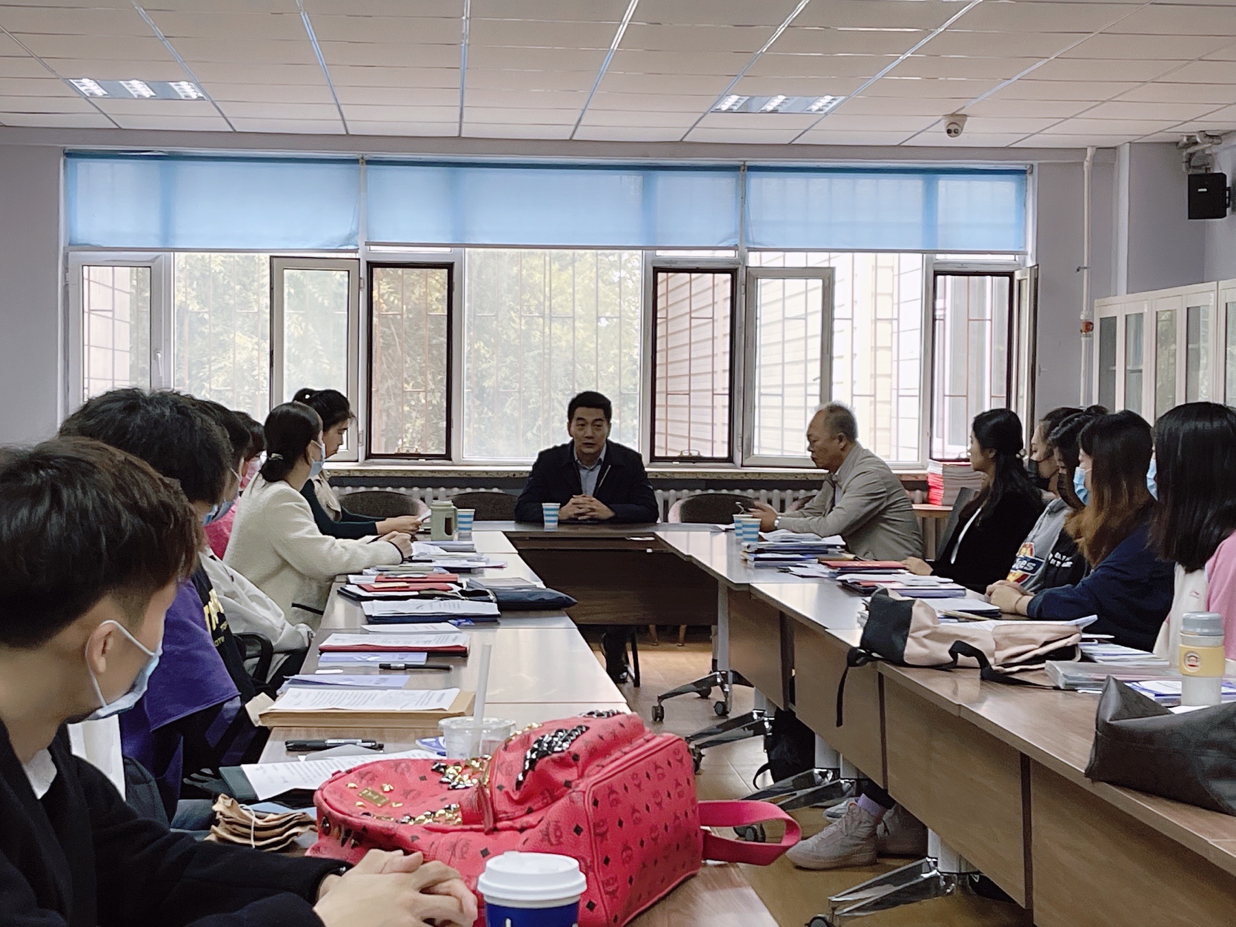 208会议室举行2021级硕士研究生新生见面会。本次会议由研究生秘书赵扬老师主持。学院院长裘鹏,副院长刁振东,研究生辅导员王紫萱以及2021级全体硕士研究生参加此次会议。