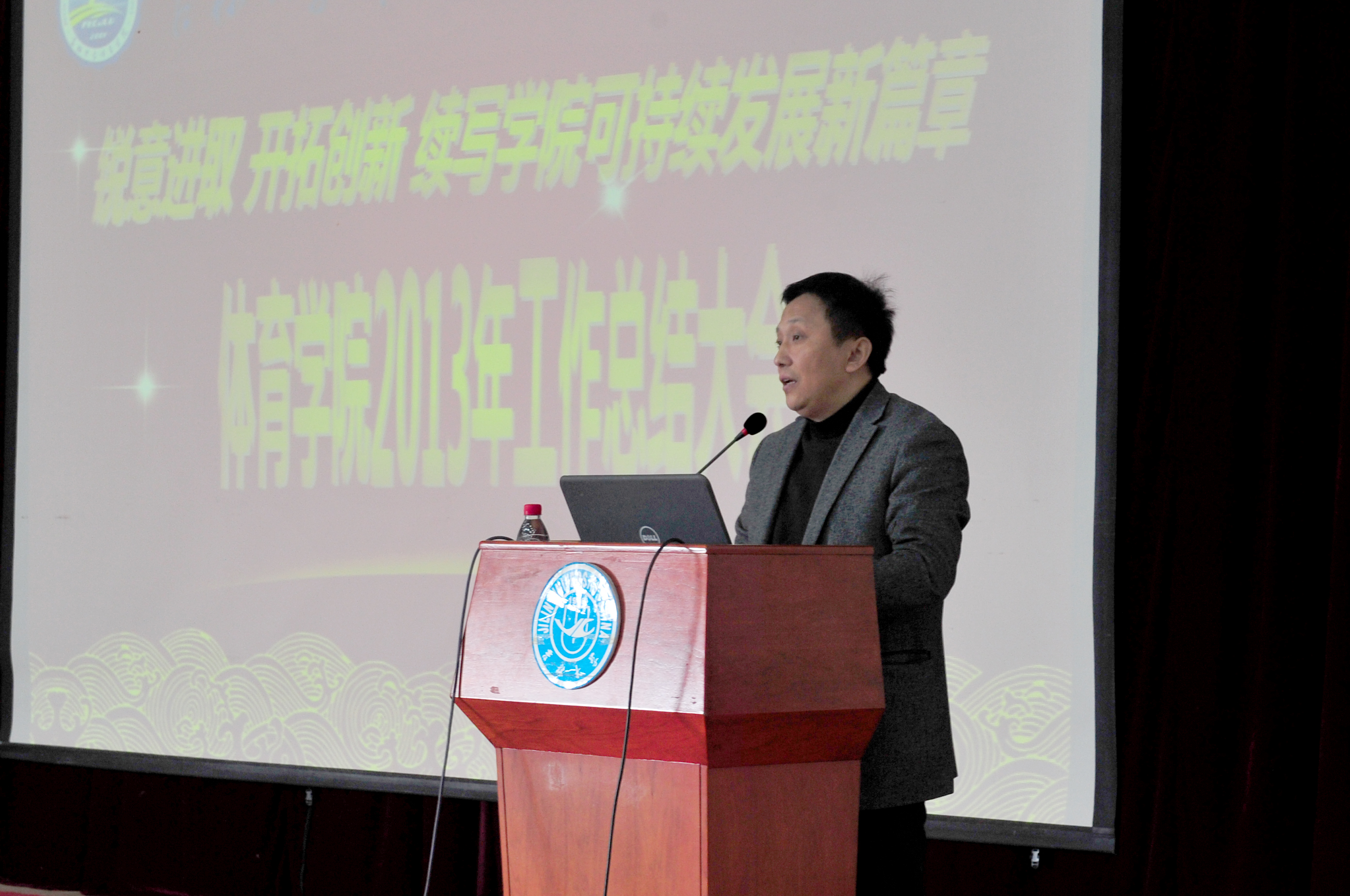 在总结大会上,院长袁雷教授做了2013年度工作总结报告。袁雷院长全面回顾了学院2013年的各项工作及所取得的成绩,他从学科建设、人才培养、科研工作、师资队伍建设、对外交流、群众体育以及竞技体育开展情况、财务工作等方面向学校领导和全院教职员工做了详细汇报,他深刻分析并明确指出了学院发展面临的问题和挑战,并要求全院师生充分认识当前学院存在的不足,时刻保持危机意识,艰苦奋斗。同时他对2014年的学院工作提出了要求和目标。