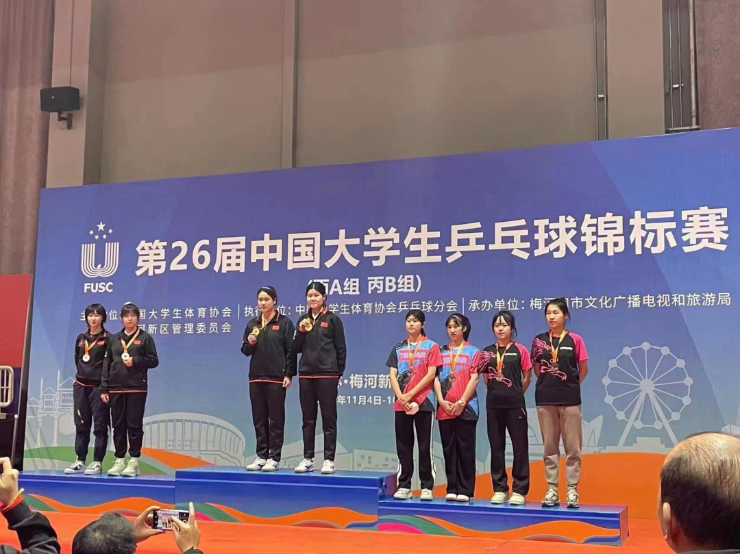 高水平乒乓球队赴梅河口市参加第二十六届中国大学生乒乓球锦标赛(丙A组、丙B组)。在领队和教练员的带领下,作为首次代表学校参加丙A组、丙B组乒乓球比赛的年轻队伍,我校乒乓球运动员们在场上不畏强手、奋勇拼搏,最终男、女队双双取得佳绩。