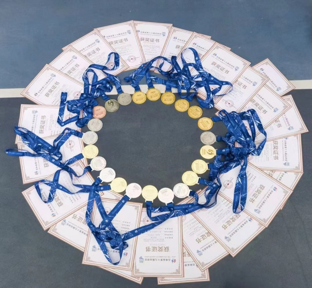 挥洒运动汗水,凝聚团结力量,努力拼搏进取,彰显青春风采。赢得比赛从来不是一个人努力的结果,而是取决于学校的支持、教练的指导、团队的协作。在成绩定格的一瞬间,已经成为历史,走下领奖台,一切从零开始。今后,黄漫