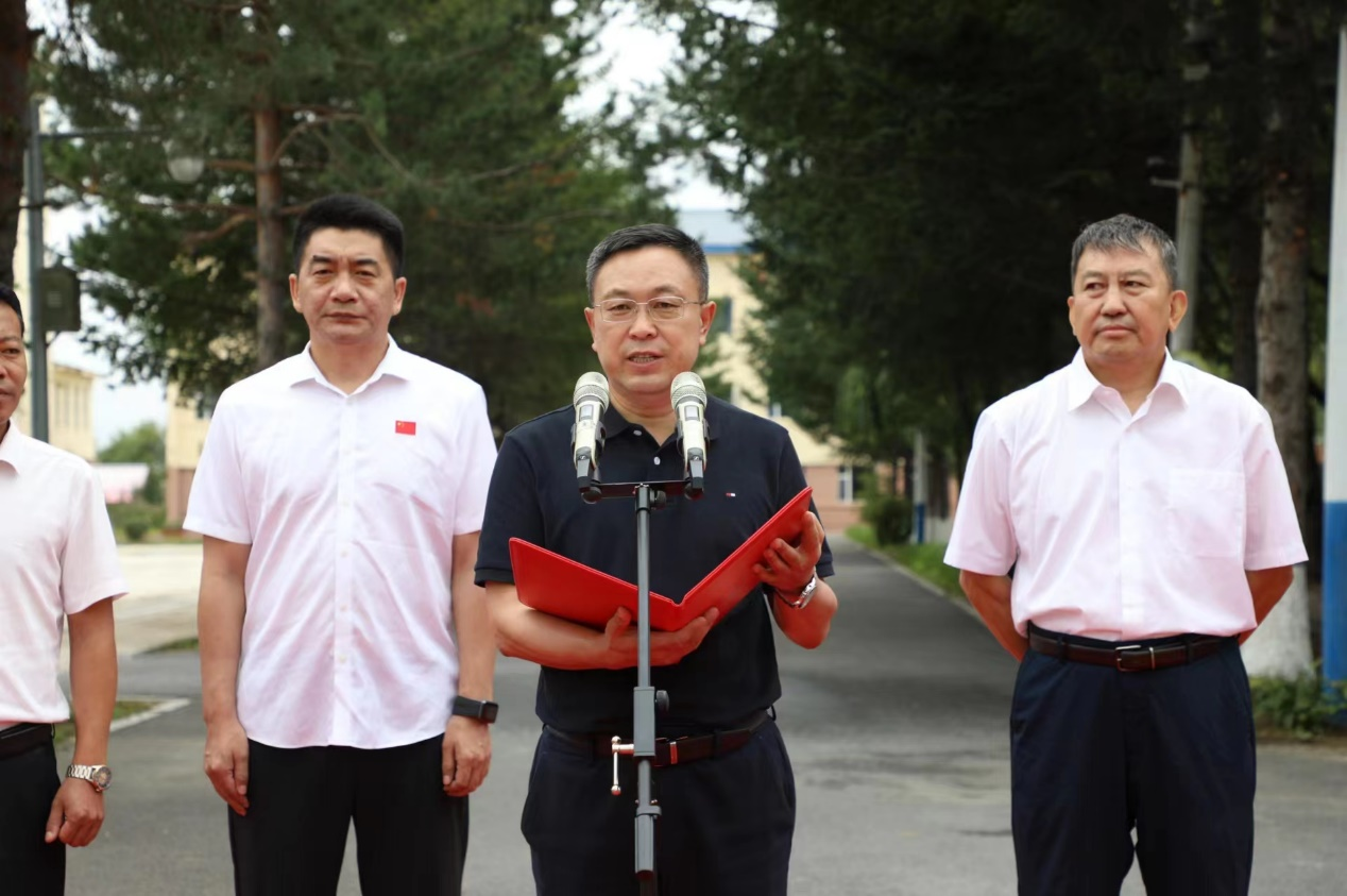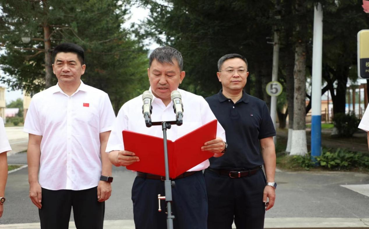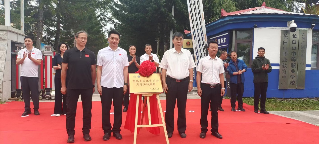 院长裘鹏与长白山保护开发区教育科技局调研员、长白山保护开发区旅游文体局党组成员齐长武,泰格岭山地运动总经理毛德昌共同为"黄漫