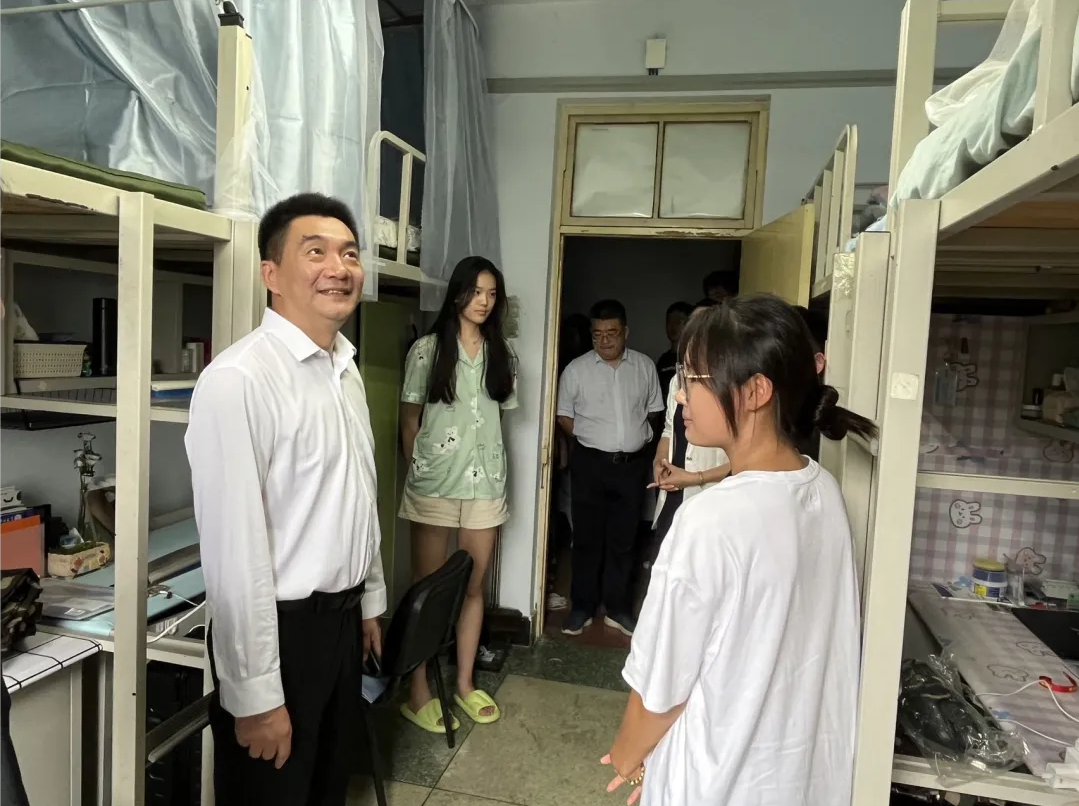 学院院长裘鹏、党委书记逄锦彩、党委副书记兼副院长苑锐、副院长郭玉莲到南苑一、二公寓,看望了2023级入学的本科生。