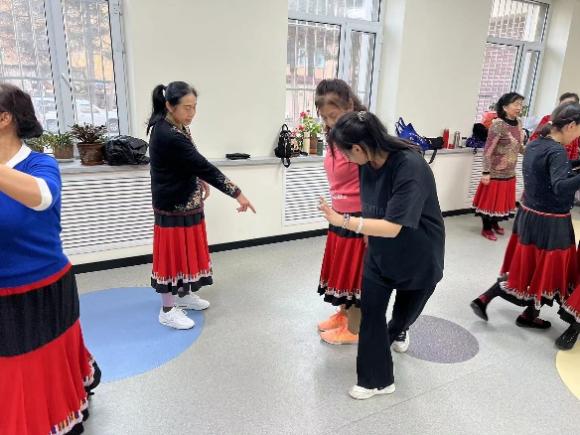 在前进街道湖光社区,体育指导队根据老年居民的特点和具体情况,一对一针对性地进行健身指导,受到居民的欢迎。
