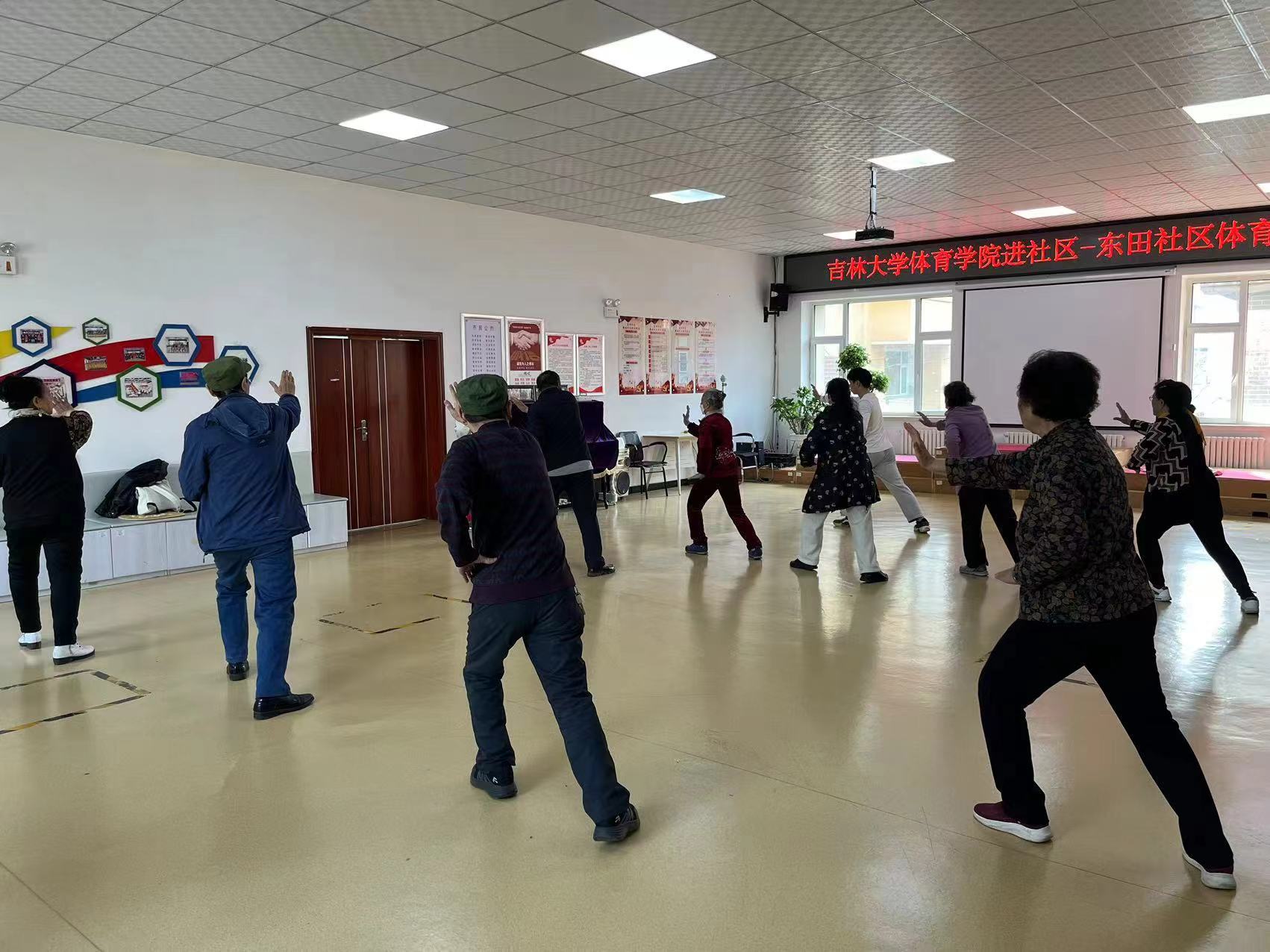 为推广全民健身运动,丰富社区居民的文化生活,近日,学院体育指导队走进东田社区开展太极拳指导活动,这次活动由黄漫