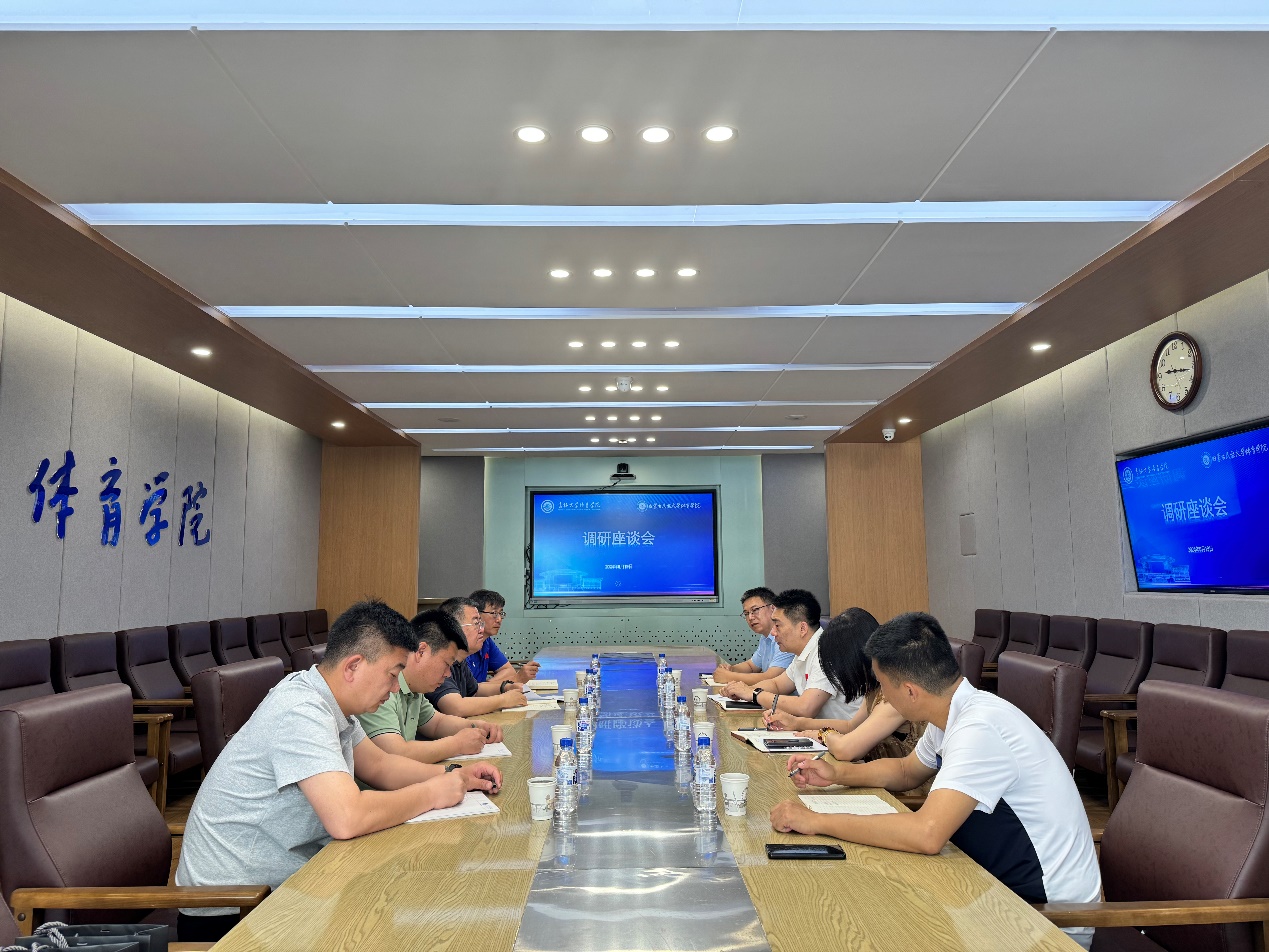 院长佘集凯、副院长张剑杰、办公室主任王聪、体测中心主任张言一行来我院调研交流。院长裘鹏,副院长王祥全、郭玉莲、邹晓峰出席交流座谈。