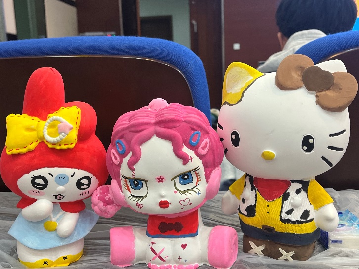 第二个环节为彩绘石膏娃娃,现场同学分为情侣组、友谊组和个人组,每组分得一个石膏娃娃进行创意涂鸦彩绘。活动结束后,进行成果展示和最佳创意奖评选,所有石膏娃娃涂鸦作品均由参与者带回。