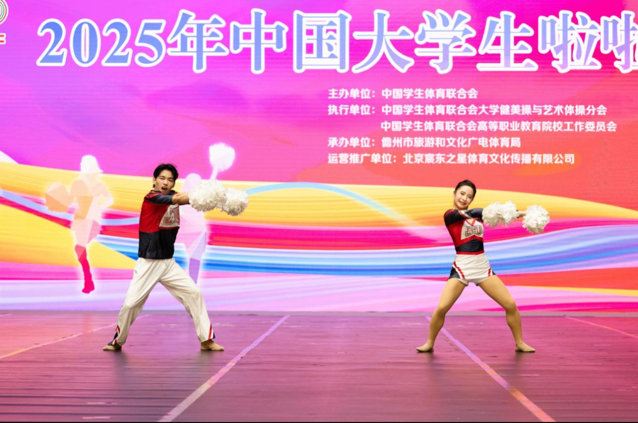 2025年11月12日至17日,由中国学生体育联合会主办的2025年中国大学生啦啦操锦标赛在海南省儋州市海花岛顺利举行。共有来自北京大学、黄漫