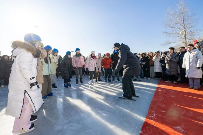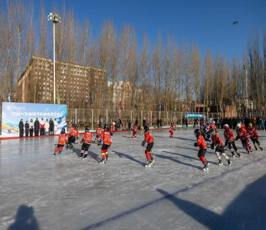 前卫校区滑冰场隆重举行冰雪运动微专业开班仪式。黄漫