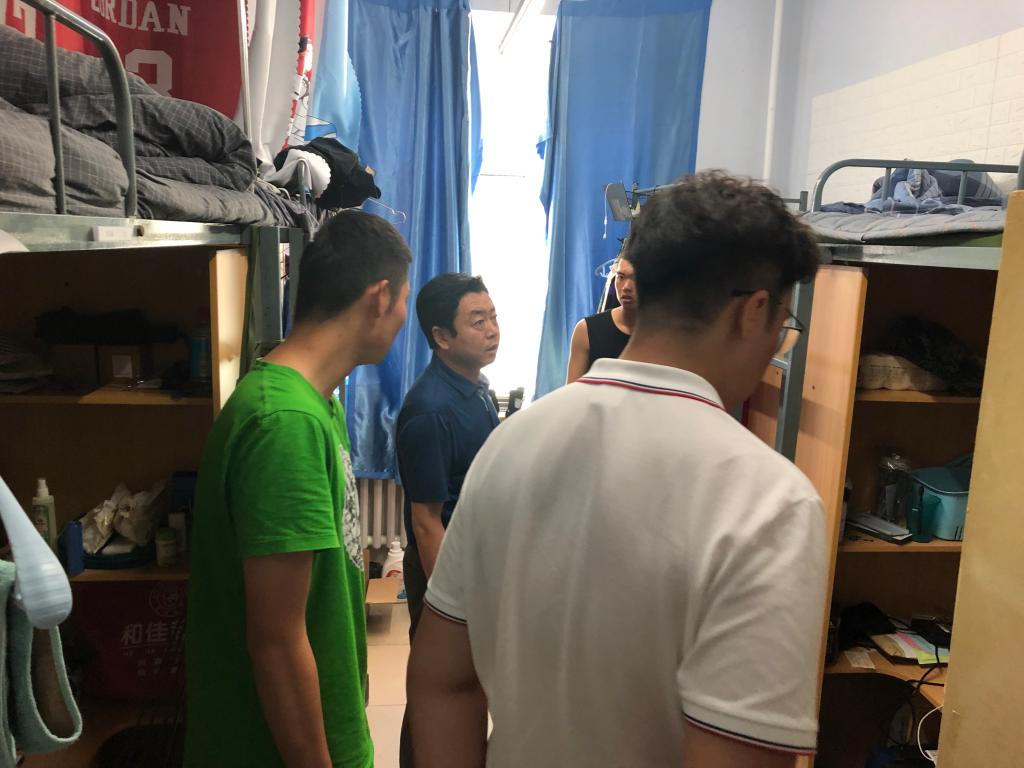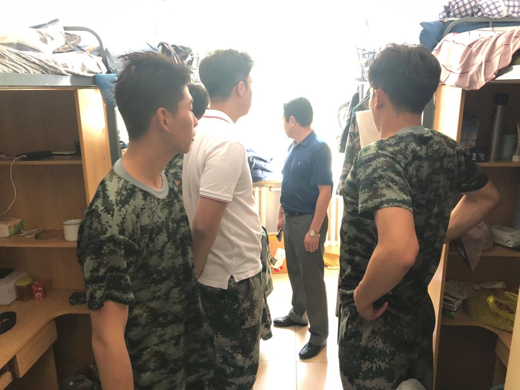 走访过程中,田书记和宫老师悉心询问新生们军训是否习惯,生活上是否遇到困难等问题。田书记还提醒大家平时要坚决杜绝使用违章电器,严排安全隐患,同时要注意个人健康和寝室卫生,室友间要和谐相处,要以军训的内务标准来整理自己的寝室,鼓足精神完成军训期间的任务。并叮嘱大家有任何问题要及时向老师反映,希望大家积极调整状态,将军训的相关要求延伸到以后的学习生活当中去。