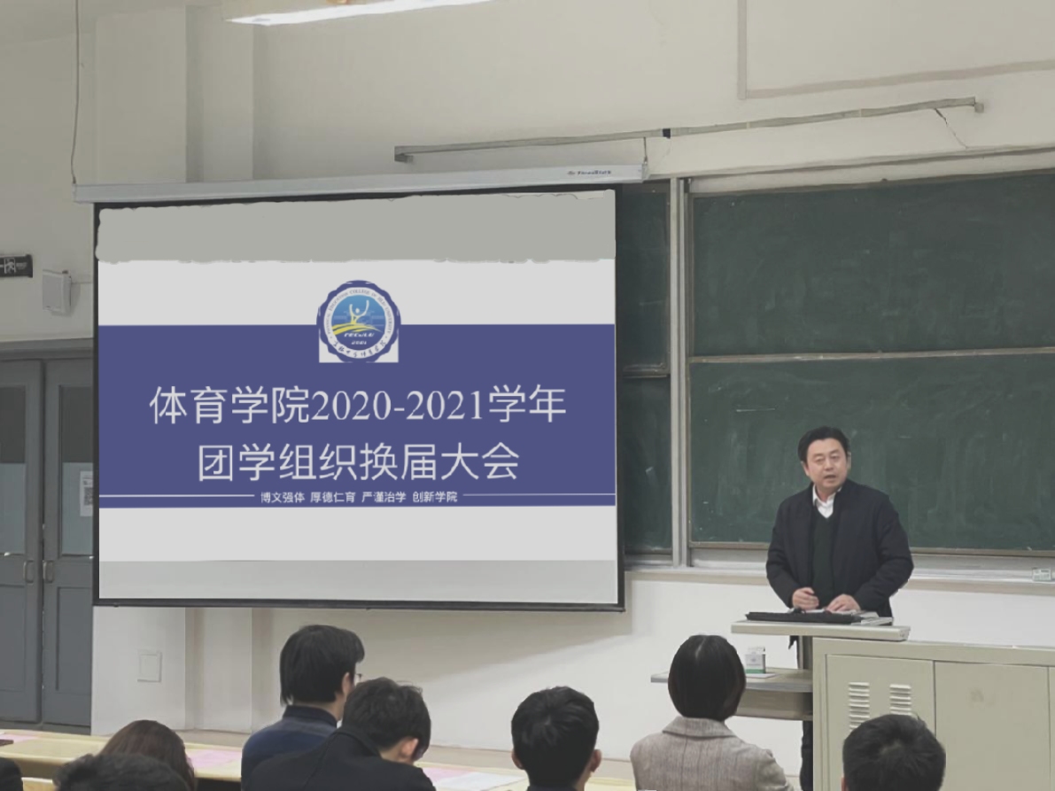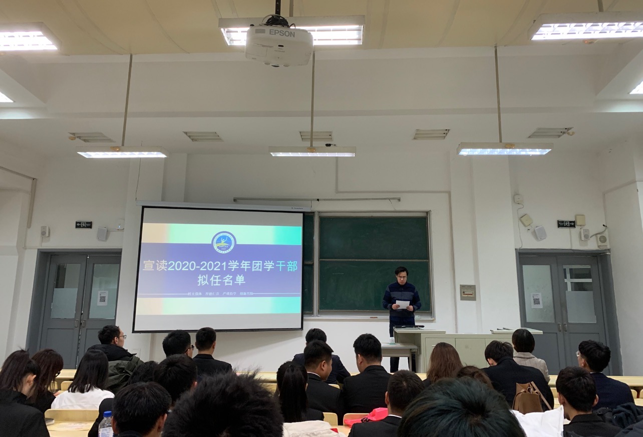 在逸夫教学楼第十五阶梯教室召开2020-2021学年团学组织换届大会。学院党委副书记兼副院长田进、全体辅导员、2020级、2019级本科生及全院学生干部参加本次活动。