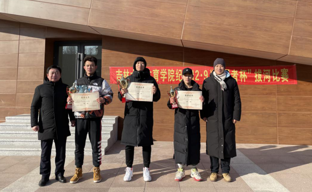 比赛开始之前,同学们提前来到体育馆门前,啦啦队员站在指定区域嘹亮的口号声参赛队员加油,现场加油声、呐喊声交相呼应。双方参赛队员进入场地各自站好,随着裁判发出“准备、抓绳”指示后,队员双手抓起绳子,降低重心,做好准备。伴随着裁判一声哨响,比赛现场立刻沸腾起来。双方队员紧紧抓牢手中的绳子,合力较劲,啦啦队的加油声此起彼伏,现场气氛紧张激烈。经过激烈的争夺,2019运训专业代表队2020级社体专业代表队2018级社体专业代表队分别获得冠军、亚军、季军。2019级社体专业2020级运训专业获得精神文明奖。比赛结束后,学院老师为获奖集体颁发了奖杯和荣誉证书,并合影留念。最后,田书记对此次活动做了简要总结,他再次强调了举办此类活动的目的和意义,并希望大家将这种团结进取、顽强拼搏、拧成一股绳的精神运用到今后的学习、工作、生活中去。至此,历时两天的拔河比赛圆满落下帷幕