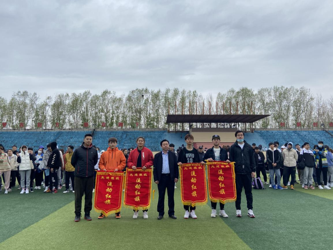 在田径场举行了本学期早操工作阶段性表彰大会。学院党委副书记兼副院长田进、全体辅导员、2019、2020级全体学生及部分学生干部参加本次活动。