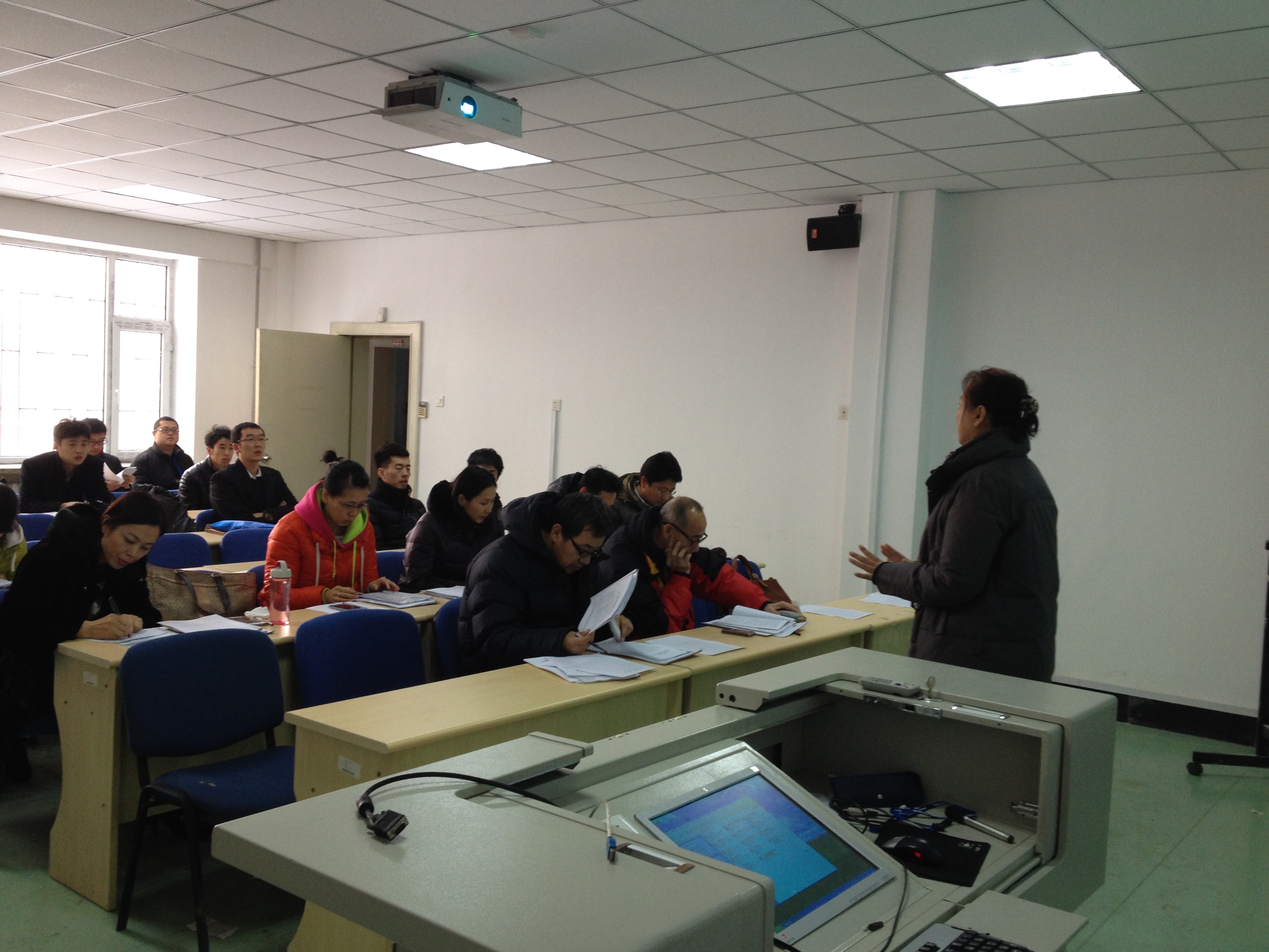学术型硕士研究生论开题在体育馆多媒体教室准时开始,整场答辩会秩序井然。评委杨杰老师、周游老师、张晓义老师、郭玉莲老师、刘英伟老师、张婷老师、迟化老师、刁振东老师、刘巍老师全程指导,董德鹏同学做记录。