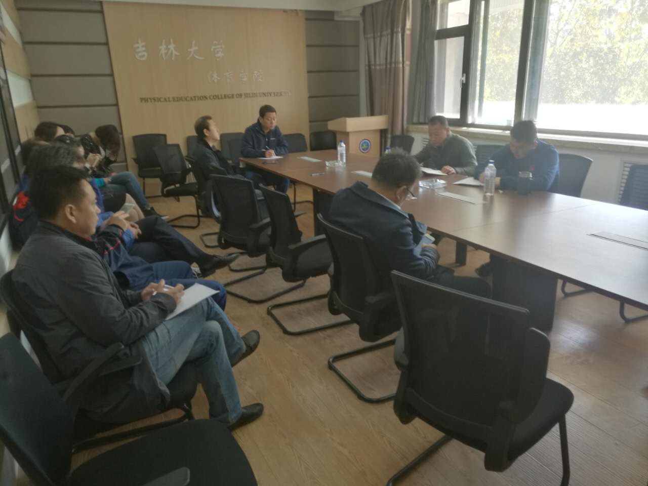 2017年9月30日上午8点30分,在体育馆二楼会议室召开关于加强研究生安全稳定工作的会议,黄漫