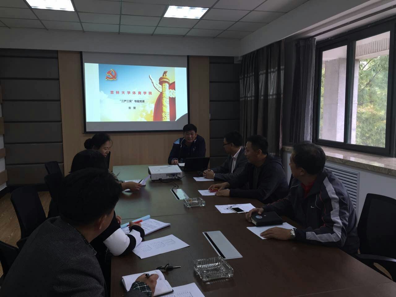 院长袁雷同志主讲,以践行“三严三实”推动学院全面发展为主题进行深入学习研讨,学院全体机关参加。