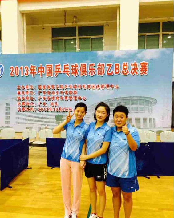 2013年中国乒乓球俱乐部乙B总决赛于11月1日至5日在广东省汕头市国家乒乓球训练基地举行,本年度参加全国乒乓球俱乐部乙B联赛预赛阶段的队伍共计二百余支,经过三站预赛的激烈争夺,最终分别有男女队各三十二支队伍杀入总决赛,经过激烈的角逐,我校乒乓球队不畏强手,奋勇拼搏,在教练员郑志彬的带领下,男女队双双取得佳绩。其中董雪莹、王思雨、梁可获得团体冠军,韩宜宸、吴琼、李雪纯获第三名,金洋、李星睿、辛明宇获得男子团体第三名。