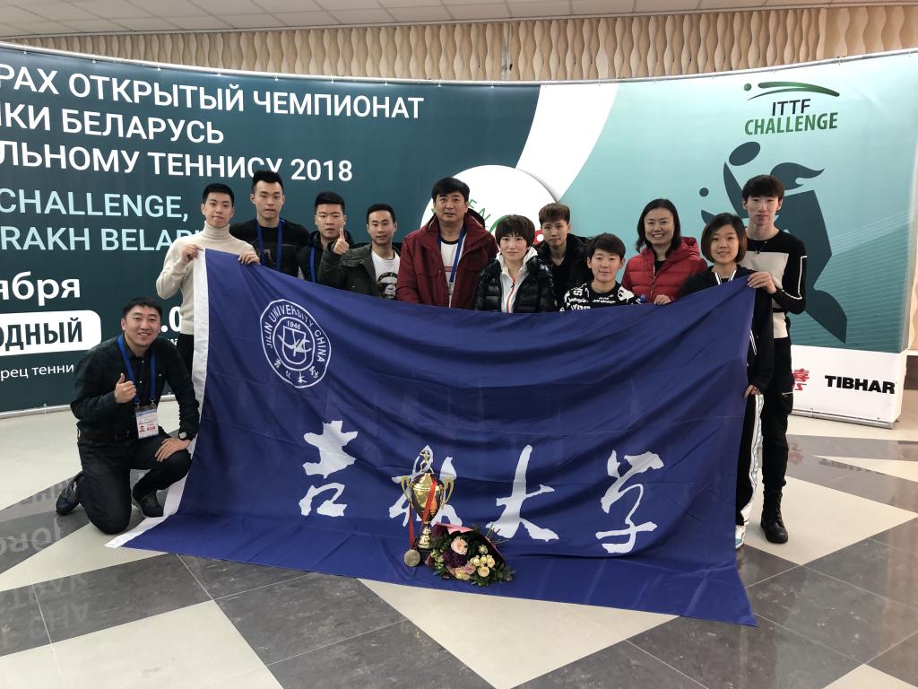 The JLU table tennis team, on behalf of China and led by Professor Yuan Lei, Dean of the Physical Education College, participated in the ITTF Challenge, held in Belarus from November 13th to 18th, 2018. As part of the qualification games leading up to the Olympics, the Challenge featured a high international presence, including nearly 400 players from 33 countries and regions, among which 64 were on world rankings. This was the first time for our table tennis team to compete on behalf of Chinain all competitions including men’s singles, women’s singles, men’s doubles, women’s doubles, and men’s and women’s singles under 21. He Aige, our women’s singles player under 21, excelled by making all the way to the final, where she played against the Japanese player Izumo Misora. During the final, she led the first game but lost the subsequent two. Thanks to the timely regrouping by head coach Zheng Zhibin,she hit back with two consecutive wins and brought home the championship with a 3-2 victory. In women’s doubles, Guo Ruichen and He Aige defeated a French pair and finished third-place.